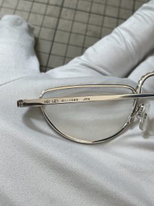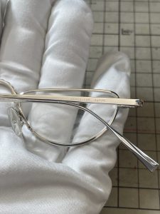 インスタでは2024年9月25日に載せています。925シルバーのハーフアイフレームです。テンプル裏面に手彫り(菱松模様)を施して、表面にレーザー刻印(品番等)です。
