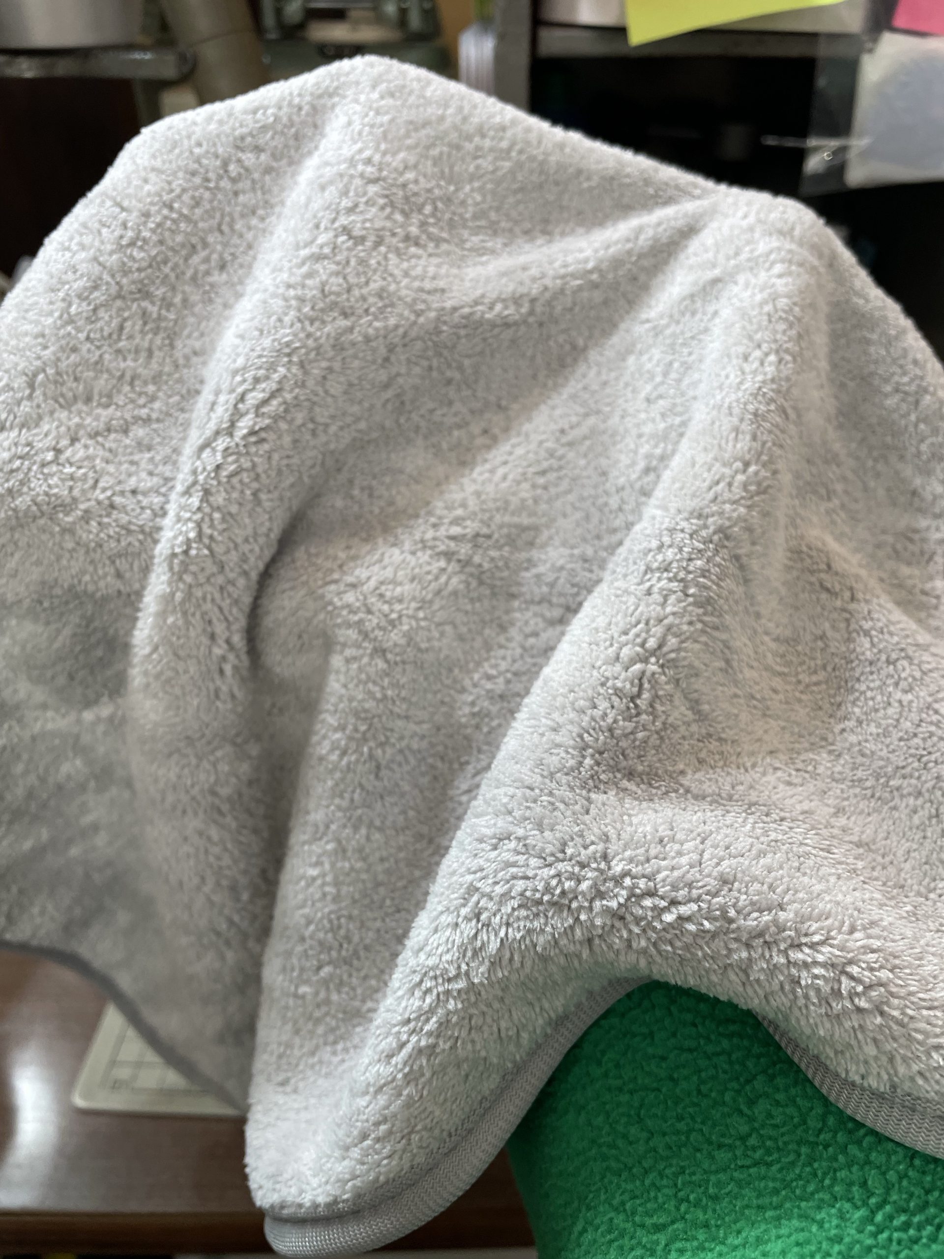 店ではタオルでメガネ全体の水を拭き、レンズはメガネ拭きで仕上げています。正直なところ自分のメガネは、家では水洗いの後にタオルでレンズも拭いています。白マルチの超撥水性能に頼っているというのもありますが。