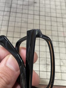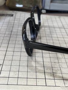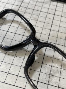装飾の組み込み方が、まさに彫刻的ですね。何もないまっさらから彫って、この造形を探り当てています。ダイヤっぽい形です。フェルトハットの、中がダイヤモンド型になっているみたいな、そんな感じのブリッジです。