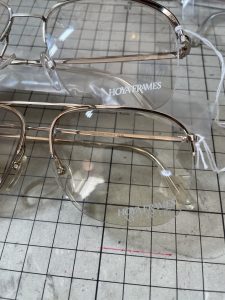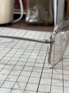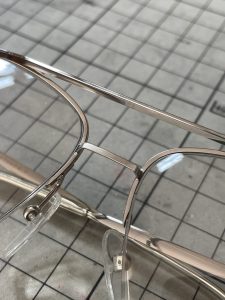 ナイロン糸とナイロンレールの取り替えを、久々に進められています。在庫化が進んでおります。いつも当店で紹介している、レールがリム上端を走っているバージョンもあります。ヨロイとテンプルの作りが堅牢で、物としてしっかりとする為に進化した感があります。要は、やや現代のメガネっぽい雰囲気を帯びているという感じです。