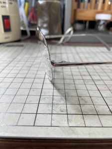 婦人用なんでしょうけど、リムのゴツさやメッキのパリッと感が合わさりまして、何となく男性もいけそうな雰囲気。ヴィンテージの婦人用メガネは、基本的にマダム感強めな物が多数派です。モンチュールはマダム感薄めのスペースエイジ感濃いめです。